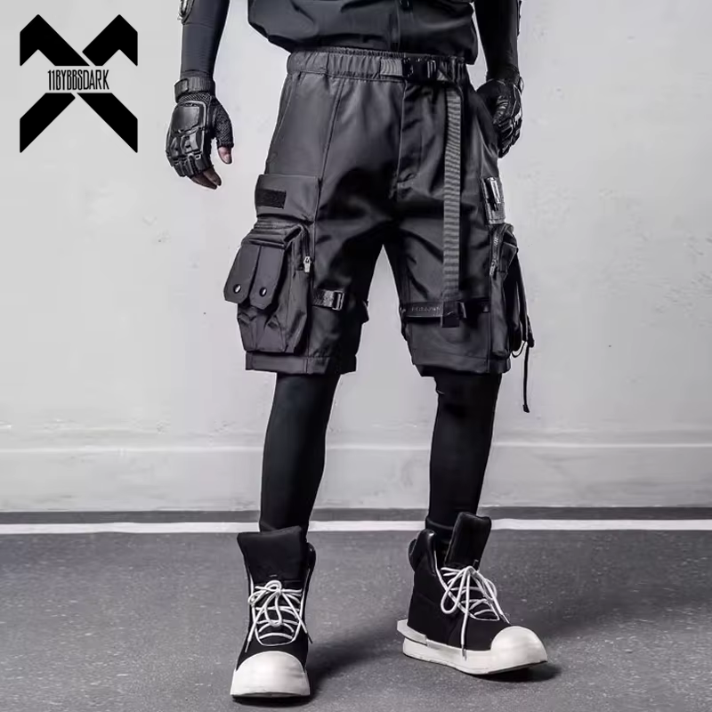 2025 verão carga shorts multi bolso calça curta tático funcional solto streetwear cintura elástica shorts preto techwear