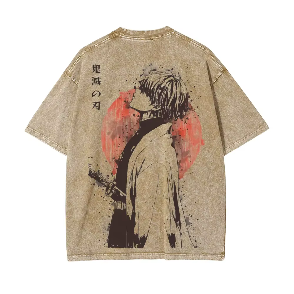 2026 verão novo zenitsu agatsuma respiração do trovão retro lavado velho camiseta demon slayer 90s estilo de rua topo de manga curta