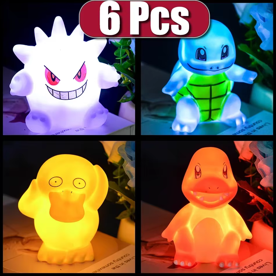 6 pçs quente pokemon pikachu luz noturna brilhante anime figuras brinquedo pokemon pikachu bonito lâmpada de cabeceira led kawaii presente das crianças