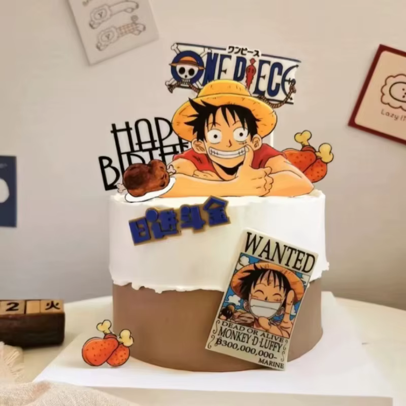 7 Peças de Topper de Bolo ONE PIECE Luffy, Decoração de Bolo de Aniversário para Meninos e Meninas, Suprimentos para Festa de Aniversário e Chá de Bebê