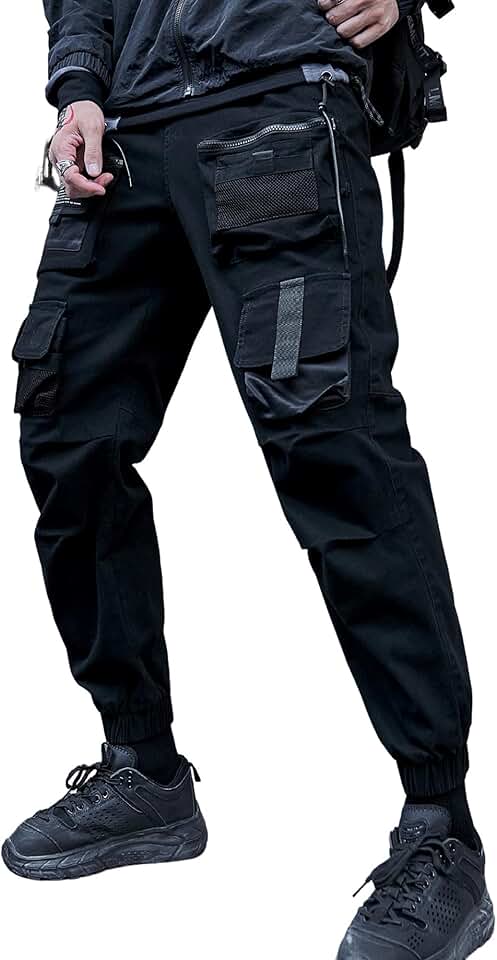 Ambcol Calça de corrida masculina Punk Cargo Baggy Techwear Hip Hop Harem Streetwear Tactical Track Pants