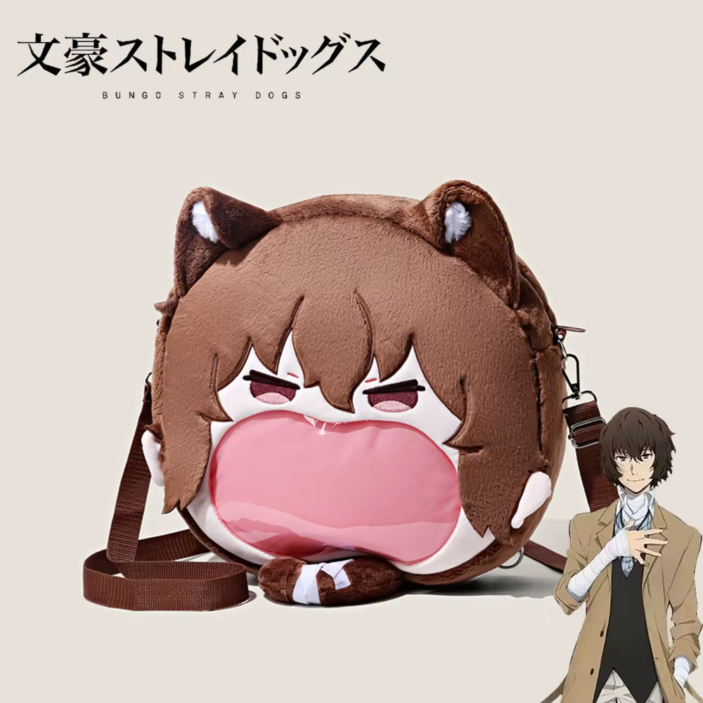 Anime bungo cães vadios dazai osamu cospaly mochila estudante saco de escola bonito bolsa de ombro de pelúcia marrom bolsas adereços