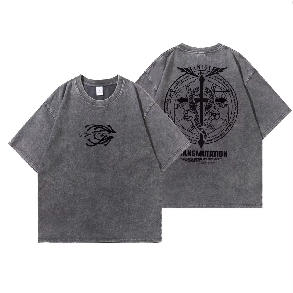 Anime fullmetal alchemist vintage lavado t camisa harajuku oversize algodão tshirts dos homens camiseta de algodão moda streetwear unisex topo