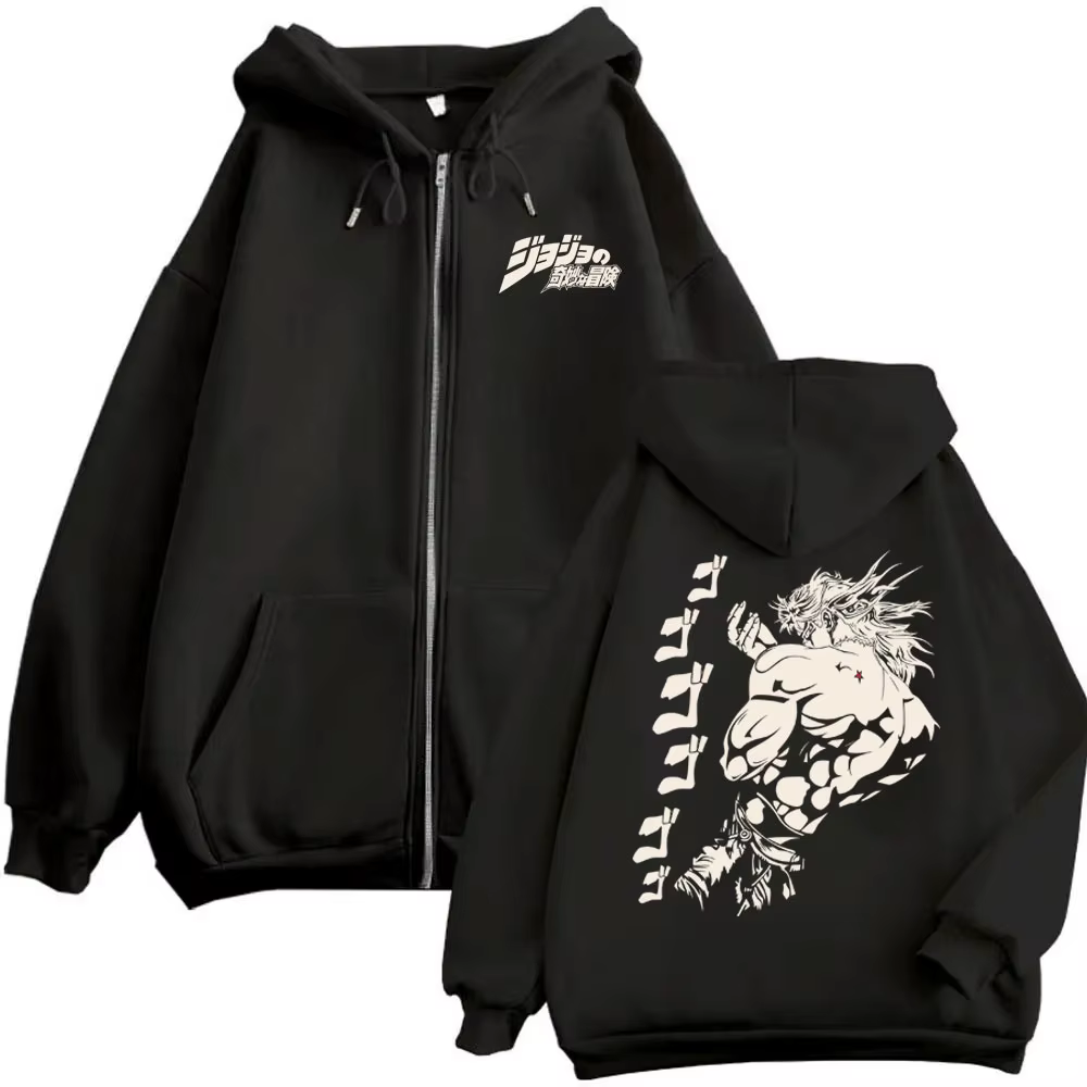 Anime jojo's bizarre adventure gráfico zíper hoodie dio brando zip up jaqueta masculina casual algodão retro zip up moletom