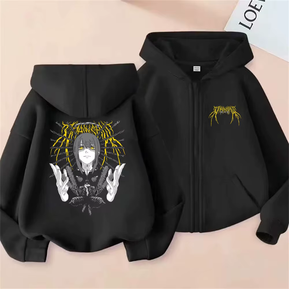 Anime motosserra homem denji e makima impressão gráfica zíper hoodie masculino feminino roupas mangá moda oversized zip up jaqueta casaco