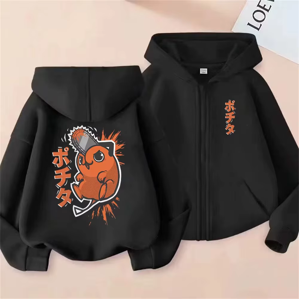 Anime motosserra homem lavado retro zíper hoodie dos desenhos animados denji pochita engraçado gráfico zip up jaqueta das mulheres dos homens mangá casaco de grandes dimensões