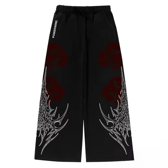 Anime nuvem impressão calças de perna larga das mulheres dos homens streetwear harajuku calças soltas com padrão asa cintura elástica casual bottoms