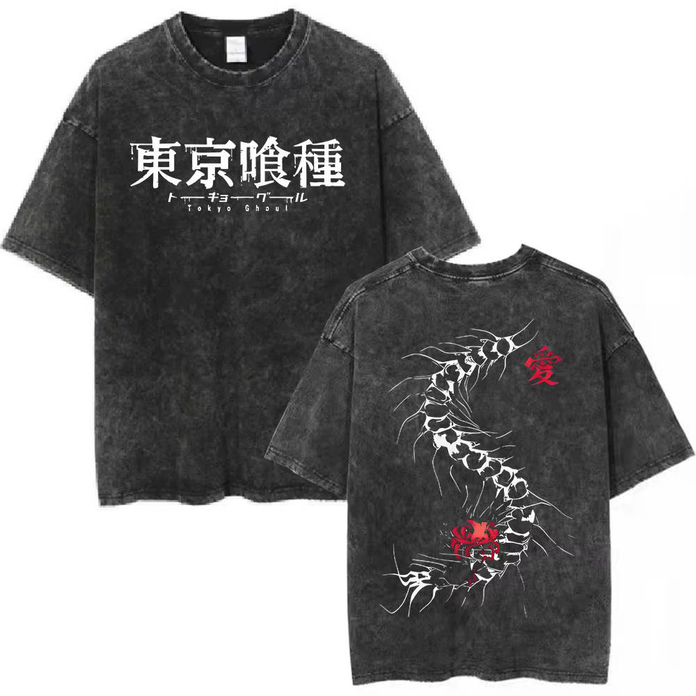 Anime tokyo ghoul kaneki ken centopéia lavado t camisa das mulheres dos homens roupas moda de alta qualidade algodão solto manga curta camisetas