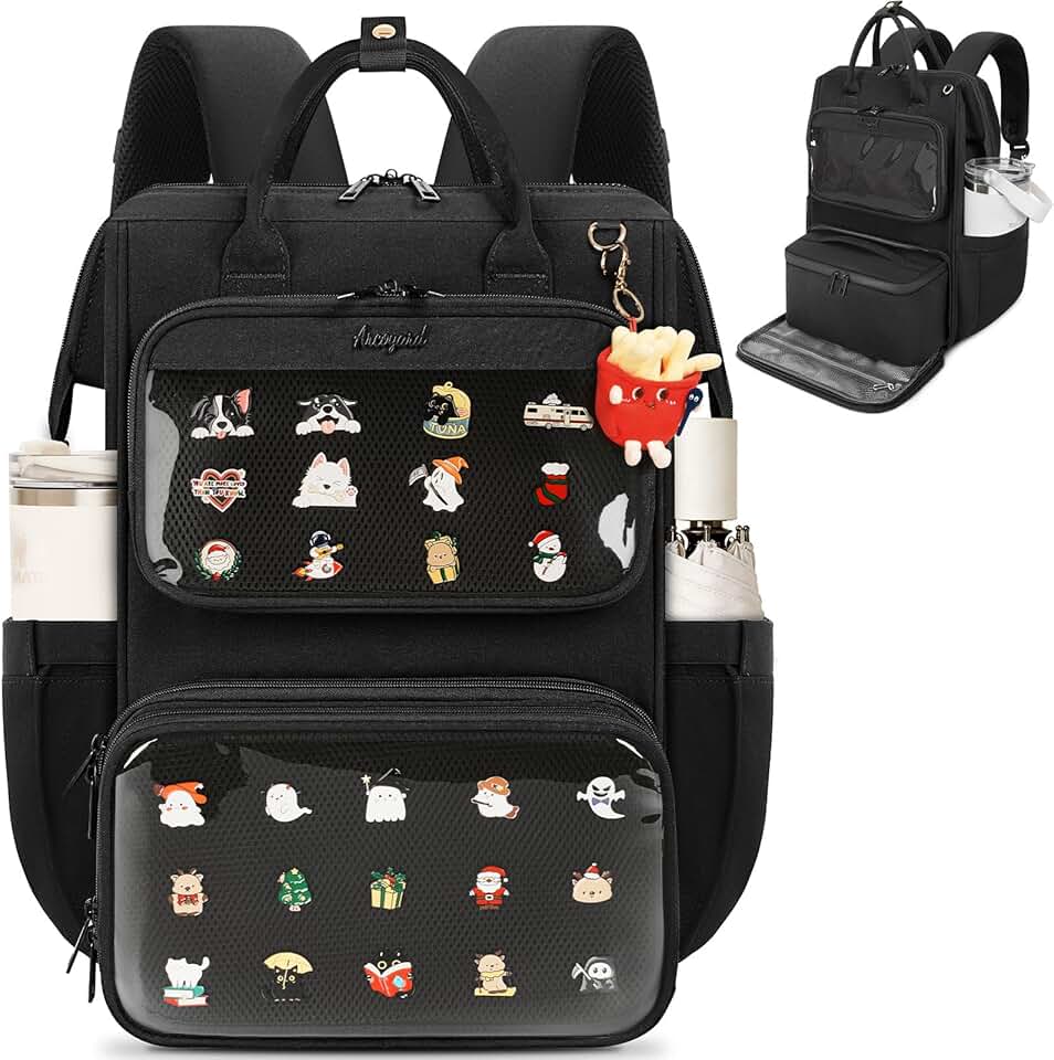 Arcoyard Mochila Ita Bag com enchimento, mochila Ita com lancheira para concertos de anime, cosplay, mochila de almoço de 15,6 polegadas com compartimento para laptop, preta