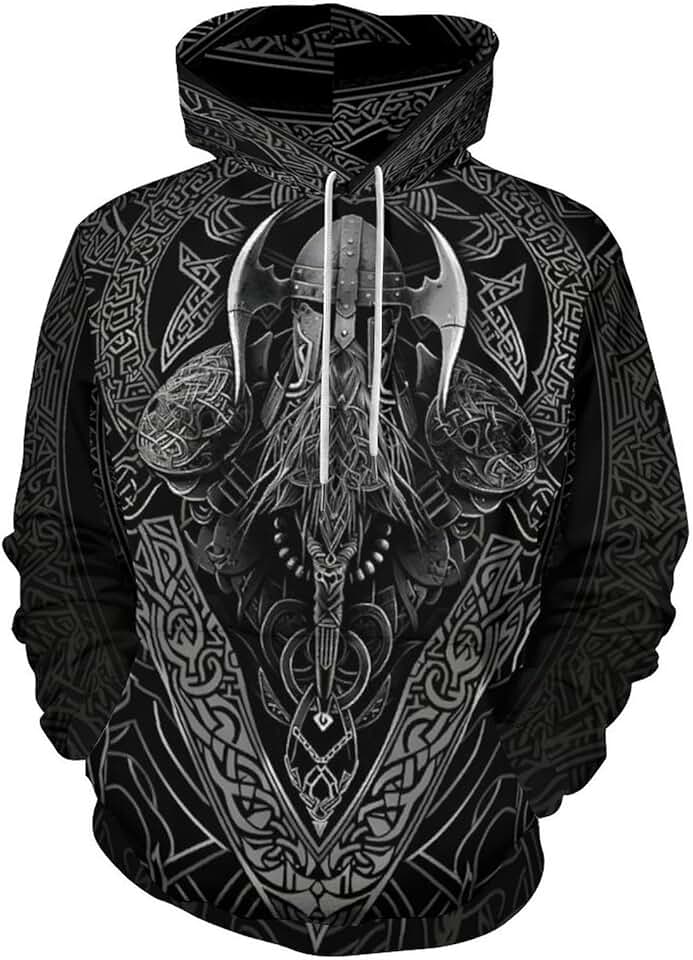 ArtistMixWay Moletom com capuz masculino Nordic Mythology Viking com estampa 3D de manga comprida