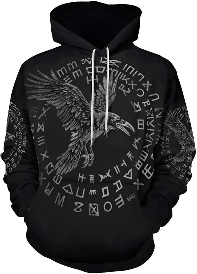 ArtistMixWay Moletom com capuz masculino Nordic Mythology Viking com estampa 3D de manga comprida