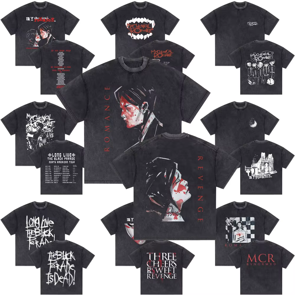 Banda punk limitada meu romance químico três felicidades para doce vingança lavada camisetas vintage das mulheres dos homens rock camisetas de grandes dimensões