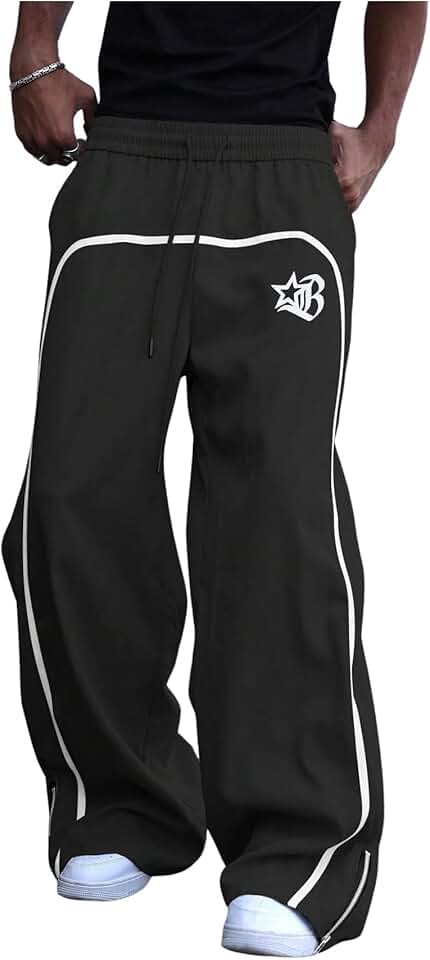 BEAUDRM Calça de moletom masculina Y2k Graphic Baggy com cordão na cintura e perna reta com bolsos streetwear