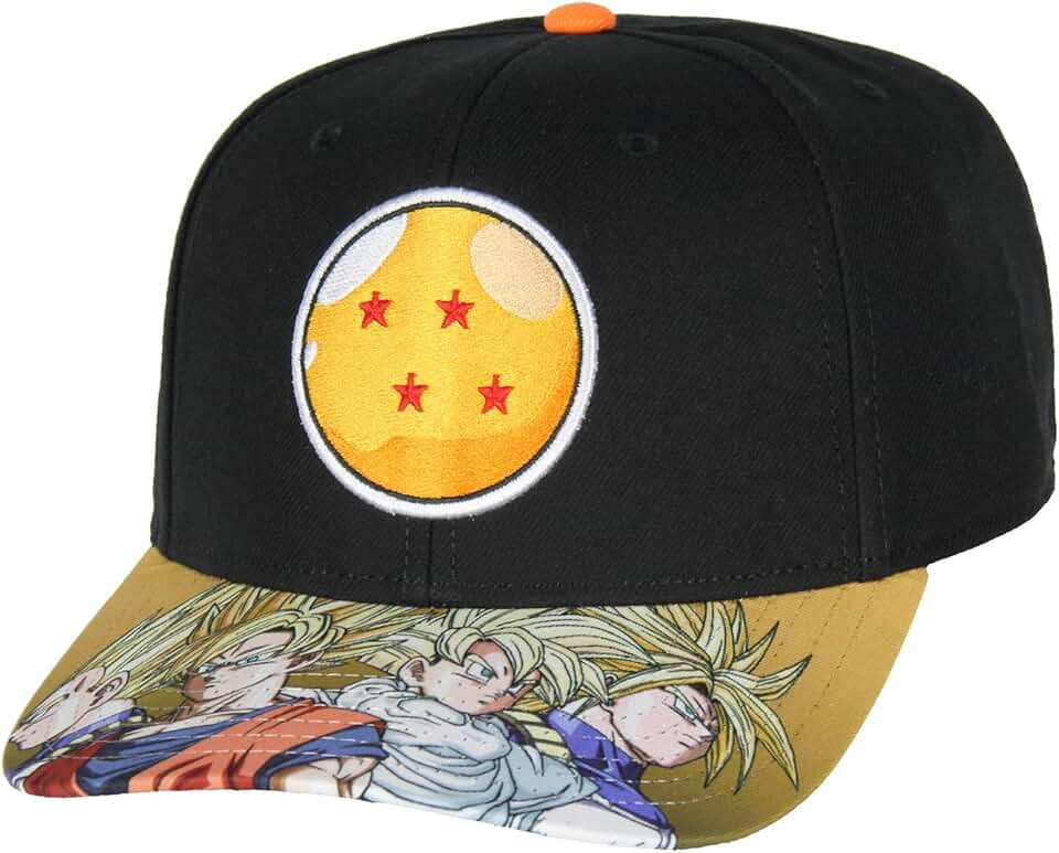Bioworld Boné Dragon Ball Z Anime 4 Estrelas Dragon Ball Bordado Super Saiyajin Goku Gohan Calção Vegeta Precurve Snapback Boné Preto, Preto, Tamanho �nica
