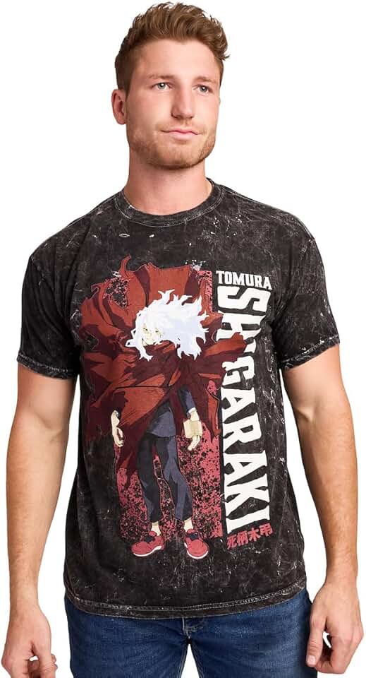 Bioworld Camiseta masculina My Hero Academia Tomura Shigaraki preta lavagem mineral grande gola redonda manga curta