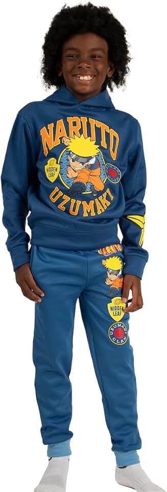 Bioworld Conjunto de moletom com capuz e calça de moletom juvenil Naruto