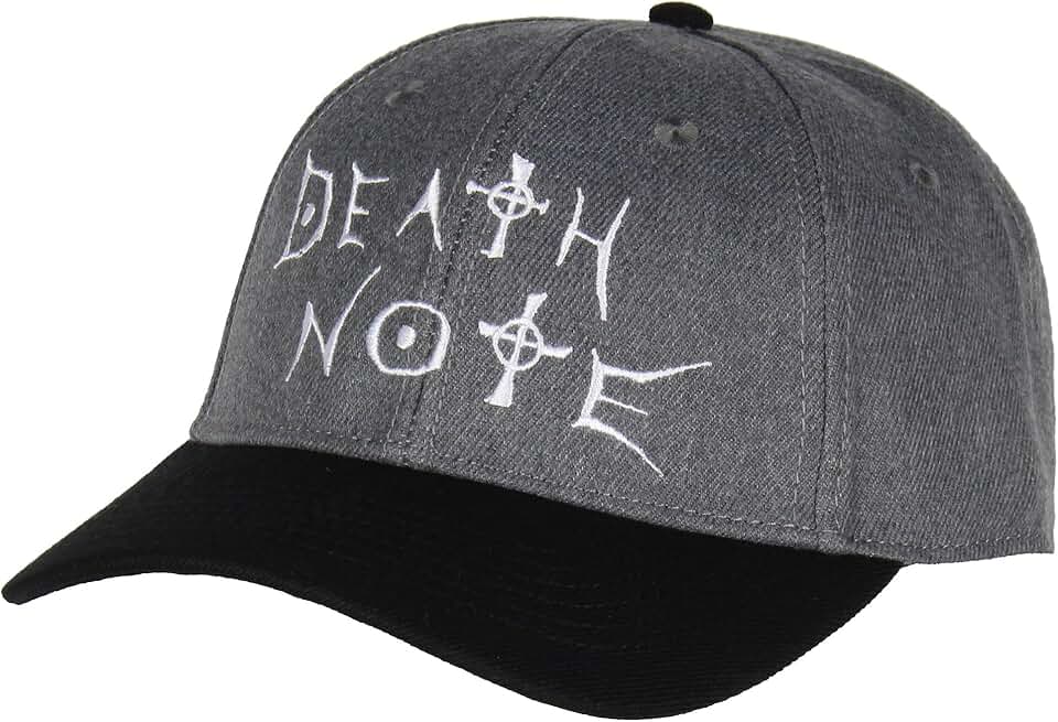 Bioworld Death Note Anime Manga Bordado Logo Design Adulto OSFM Chapéu Snapback Pré-curvado para Homens e Mulheres, Cinza, Tamanho �nica