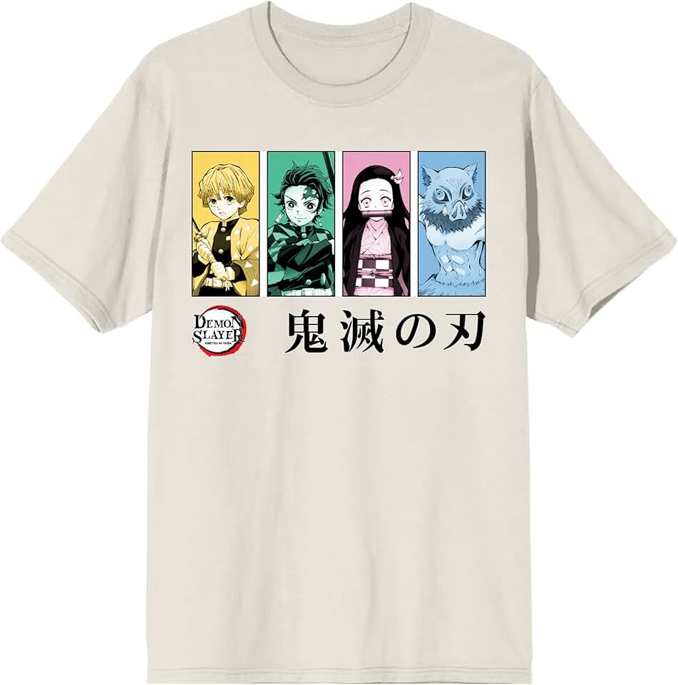 Bioworld Demon Slayer SSN 1 Monocromático Grupo Emoldurado em Tofu Camiseta Adulto Manga Curta Gola Redonda