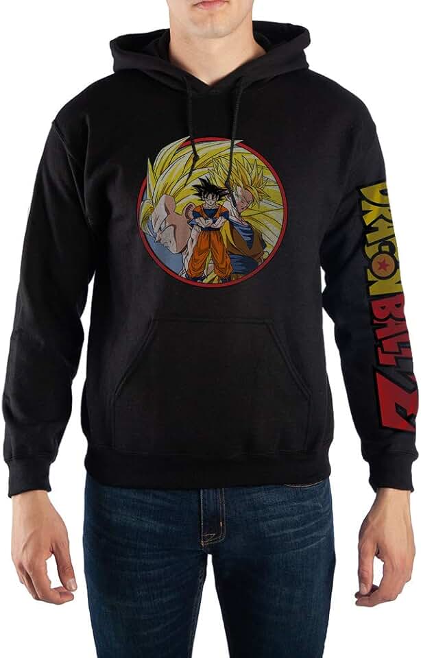 Bioworld Moletom com capuz Dragon Ball Z Goku Super Saiyajin, Preto, M