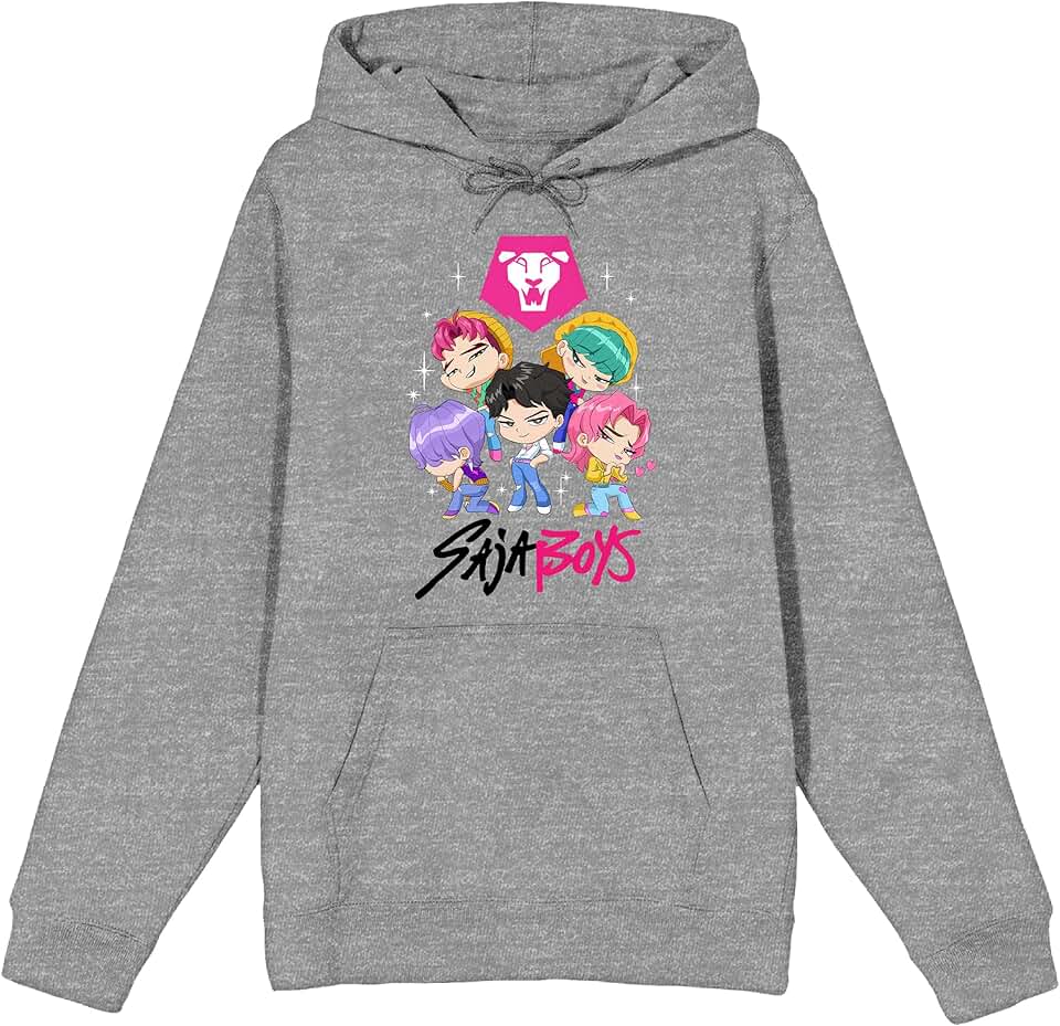 Bioworld Moletom com capuz KPop Demon Hunters Saja Boys Kawaii Chibi Art Adulto Cinza Urze Manga Longa