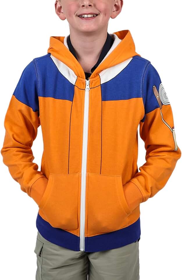 Bioworld Moletom com capuz Naruto Uzumaki Naruto cosplay meninos com zíper, Multicolorido., P