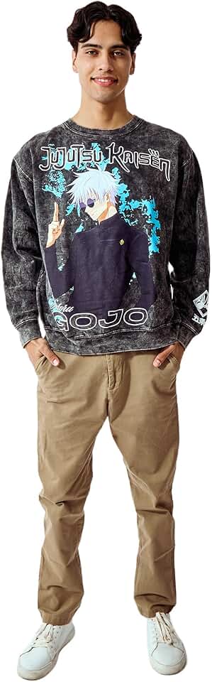 Bioworld Moletom Jujutsu Kaisen Gojo unissex com gola redonda envelhecida