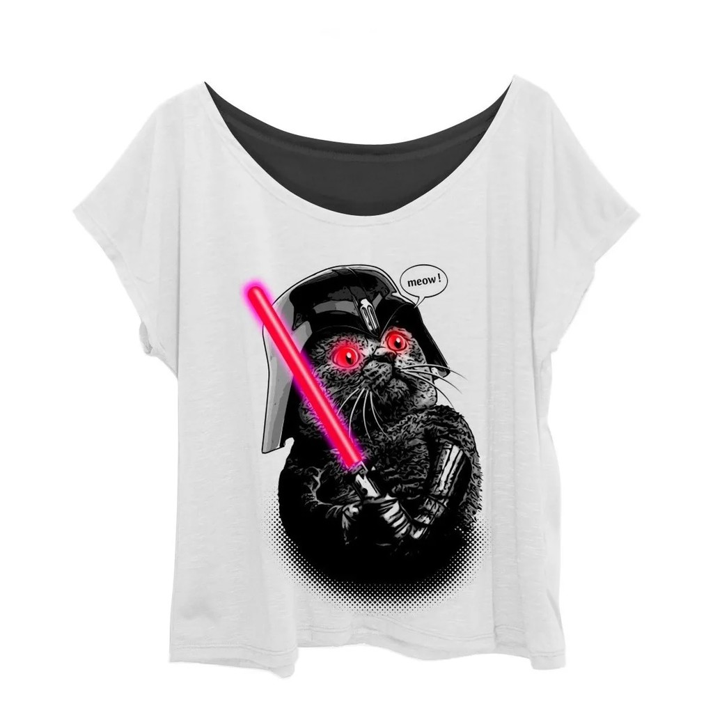 Blusa Blusinha Feminina Plus Size Estampa Gato Vader Geek Star Wars Tamanho Grande