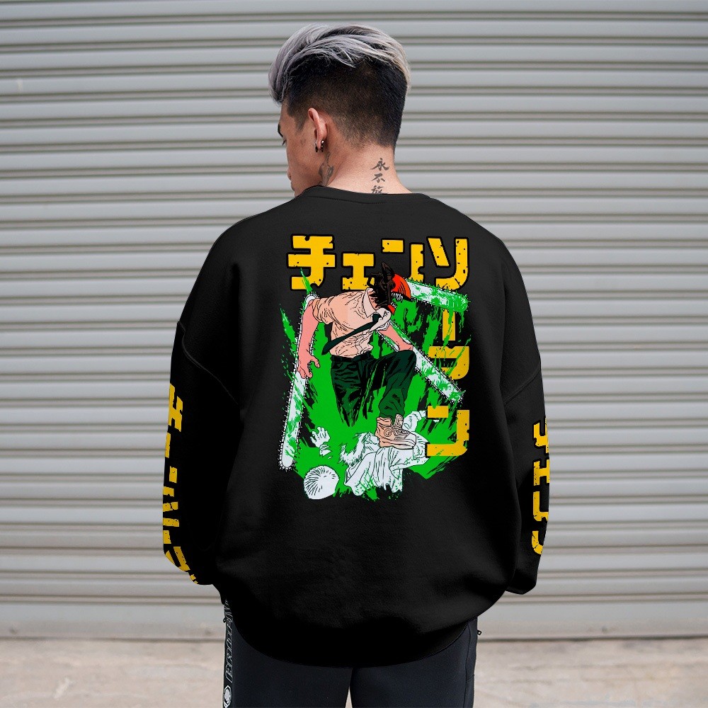 Blusa De Moletom Chainsaw Man Denji Pochita Personagem Gola Careca Home Custom