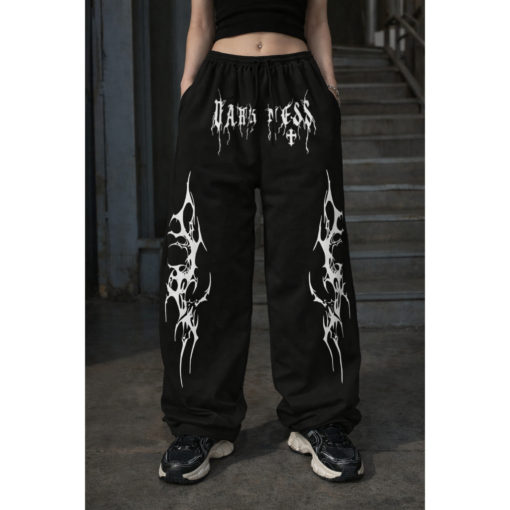 Calça Weedy Baggy Moletom Streetwear Dark Press Estampa Gótica