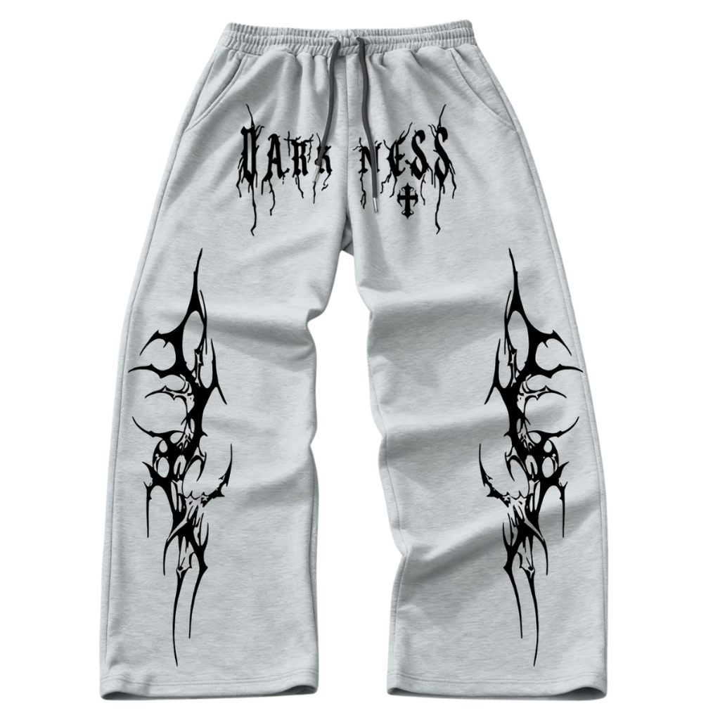Calça Weedy Baggy Moletom Streetwear Dark Press Estampa Gótica Underground