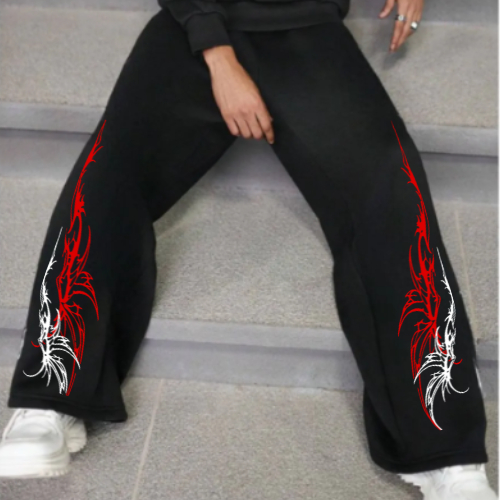 Calça Wide Leg Moletom Masculina Em Algodão Streetwear Tribal Punk Gotico Arte Dark Mod cod 710