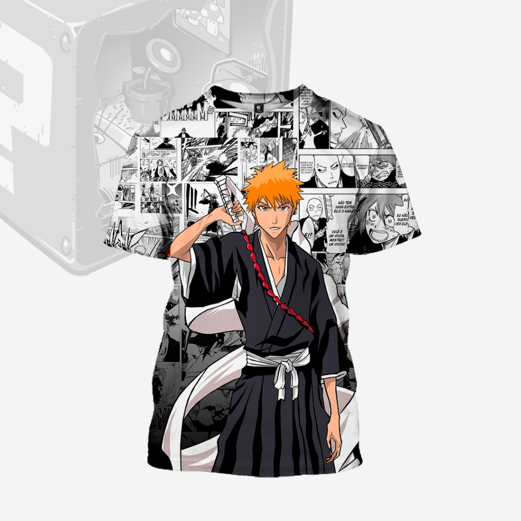 Camisa Camiseta Bleach Anime Ichigo Estampada Quadrinhos Total Arte Unisex Adulto Infantil