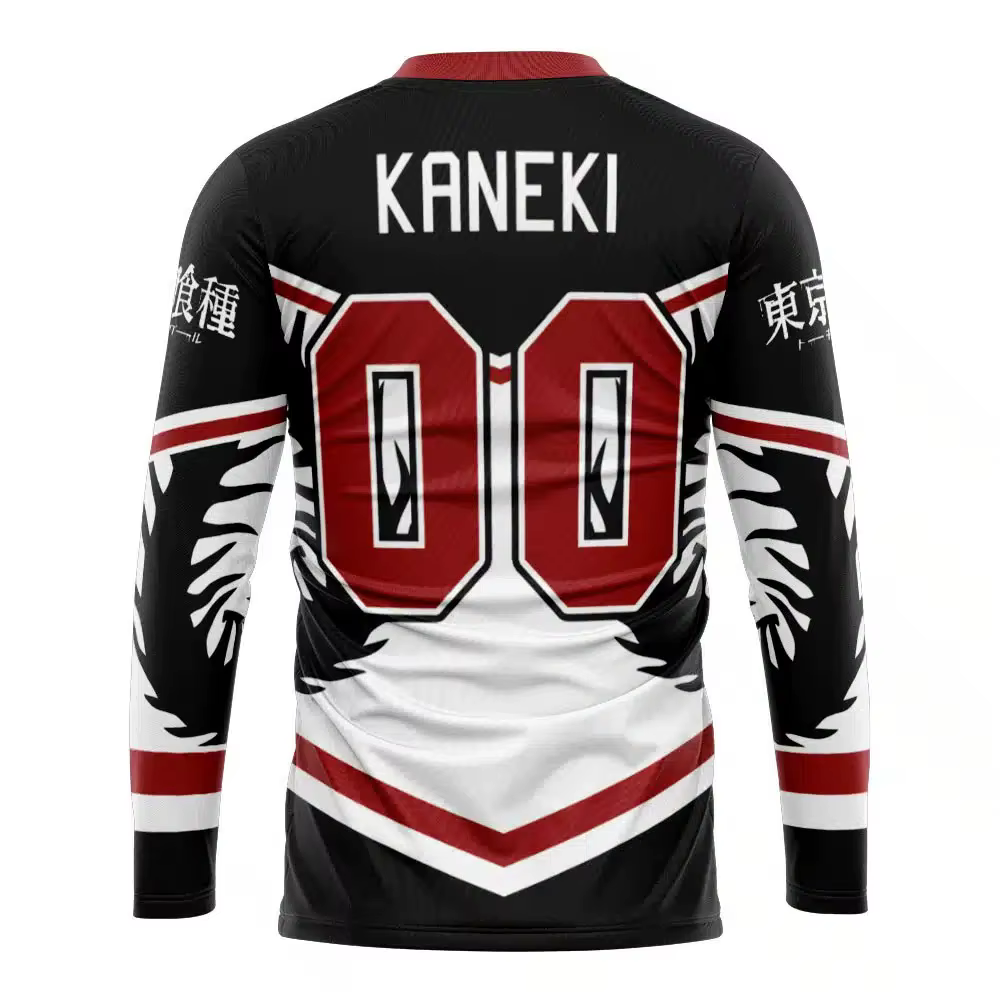 Camisa de Hóquei Bandai One-Eyed King Ken Kaneki Tokyo Ghoul Anime Manga Longa Gola V Camiseta de Verão Secagem Rápida Macia Leve