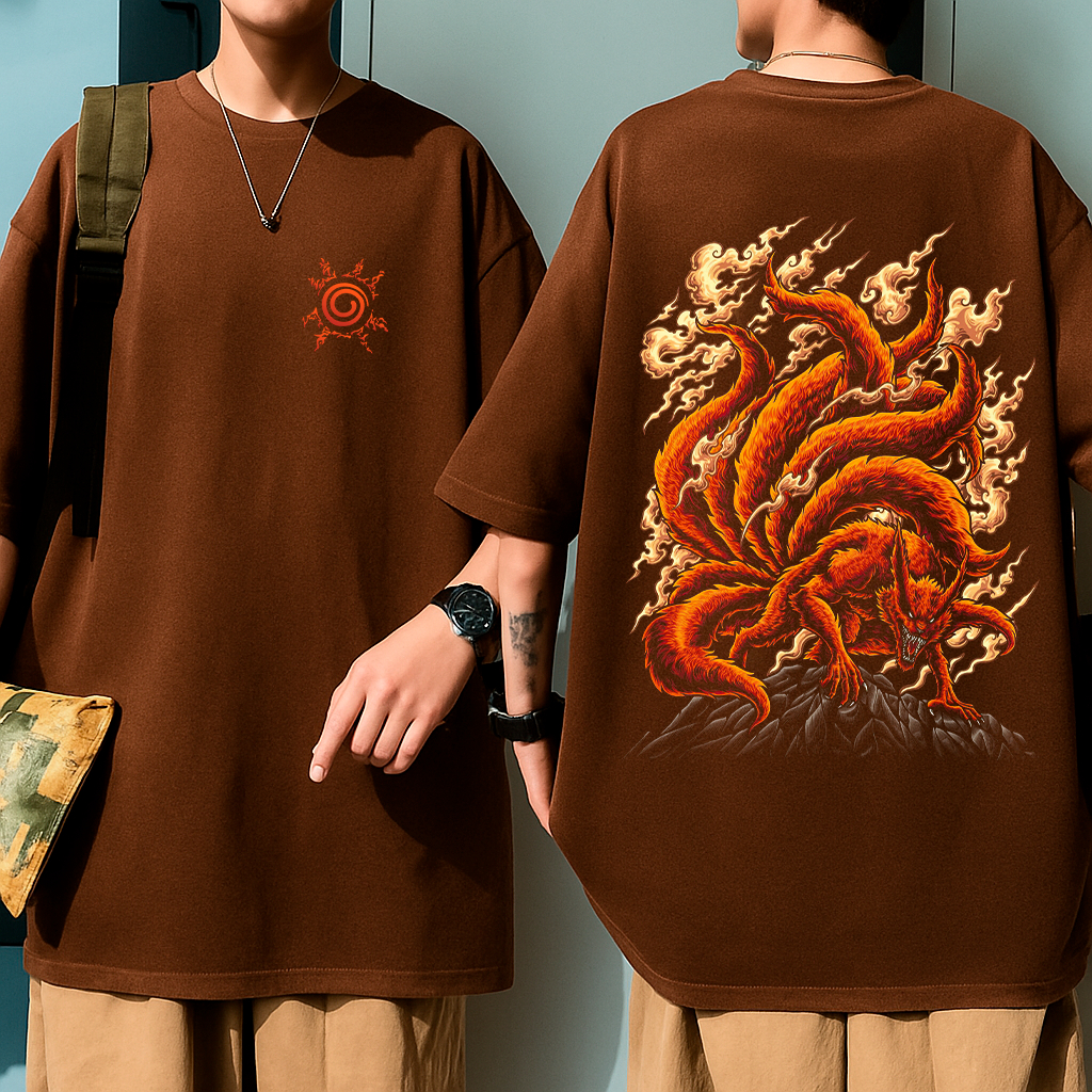 Camiseta Algodão Oversized Anime Kurama Mangá Japonês Naruto