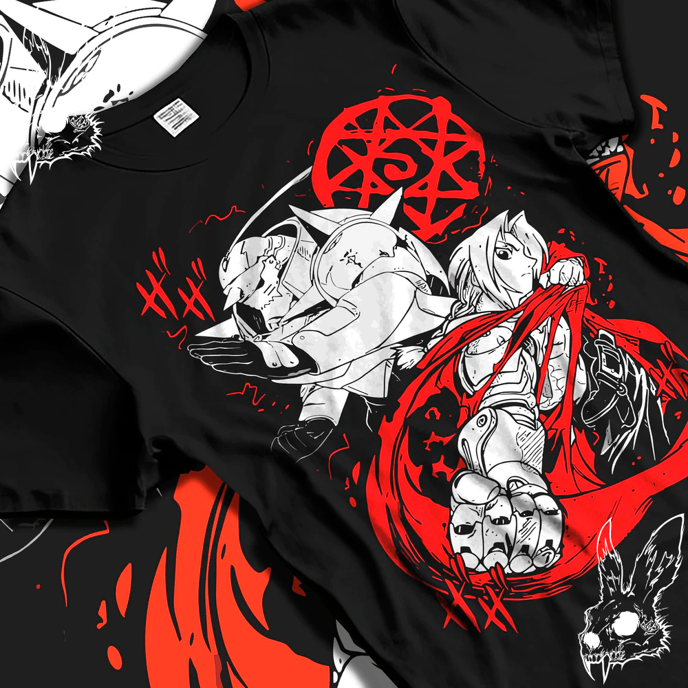 Camiseta Básica e OVERSIZED Estampada Fullmetal Alchemist Anime Edward Elric e Alphonse Elric -Darknezz