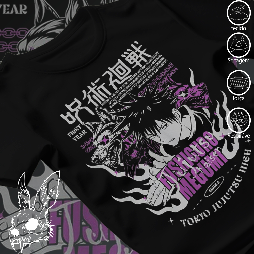 Camiseta Basica e OVERSIZED Megumi Fushiguro toko Jujutsu Kaisen High Dogs Senpai Unissex