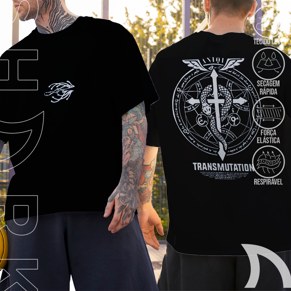 Camiseta Basica e OVERSIZED Transmutation Aniqi Snake Fullmetal Alchemist Anime Unissex