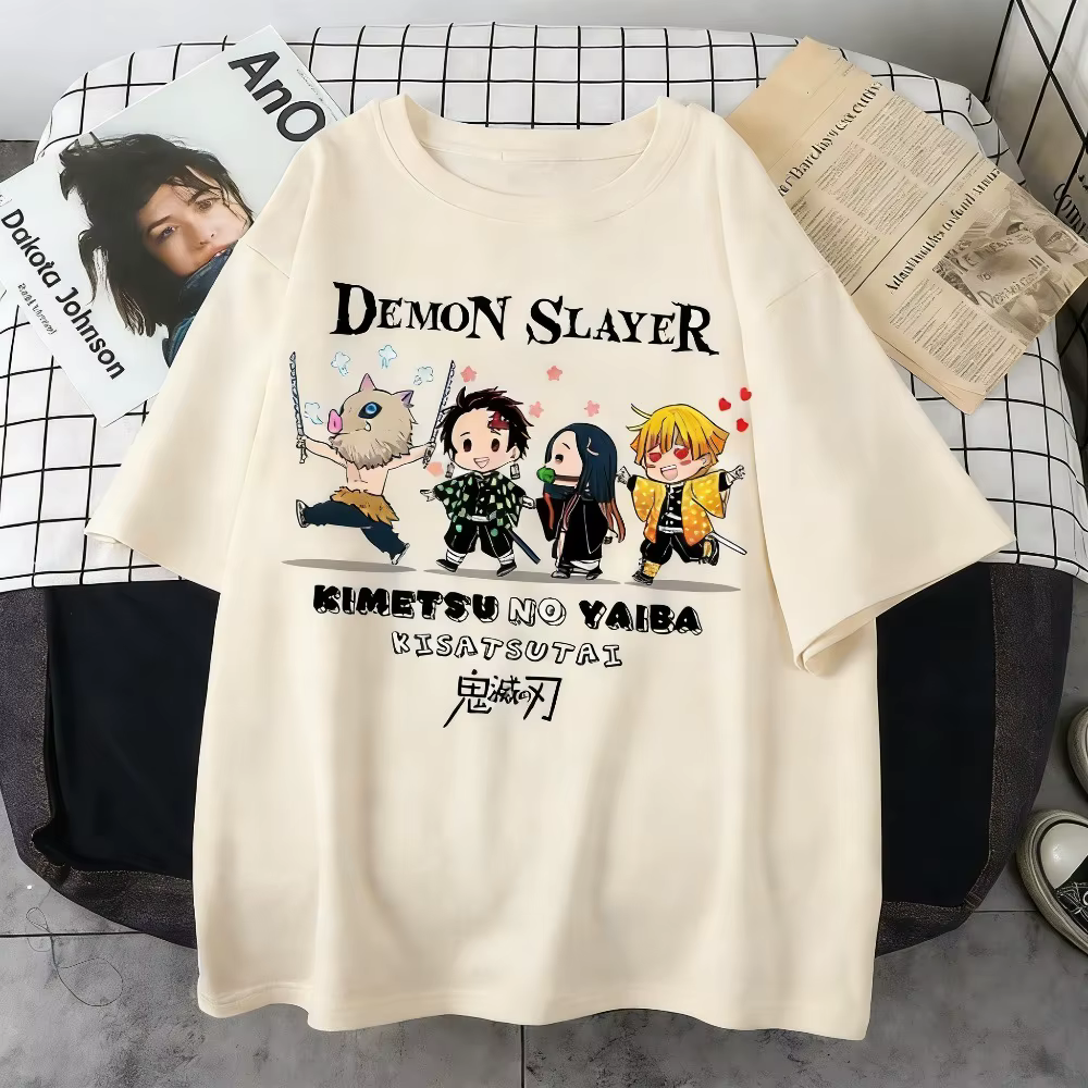 Camiseta Casual Estampada Demon Slayer para Homens e Mulheres Plus Size, Moda de Rua Estilo Harajuku Y2K