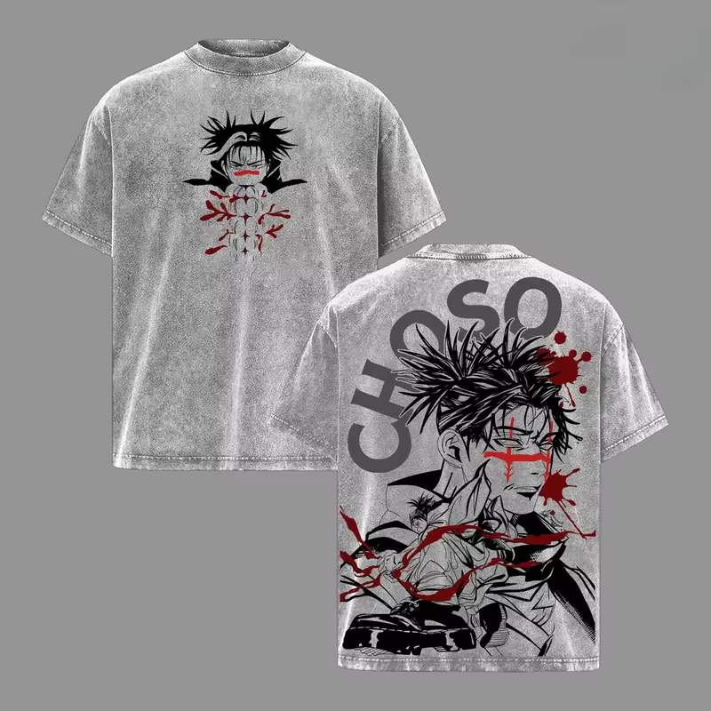 Camiseta Estampada Anime Jujutsu Kaisen Choso para Homens e Mulheres, Manga Curta, Algodão, Estilo Retrô Lavado, Tops Masculinos de Manga