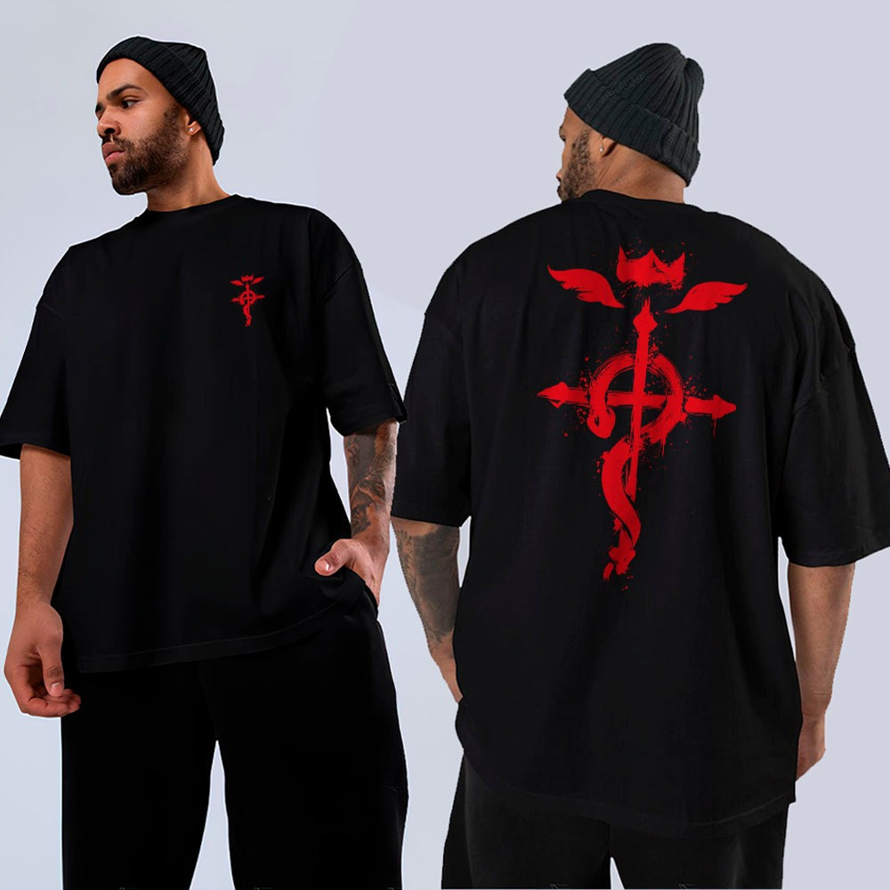 [Camiseta de algodão puro de alta qualidade] Camiseta básica de corte largo do anime 'Fullmetal Alchemist'