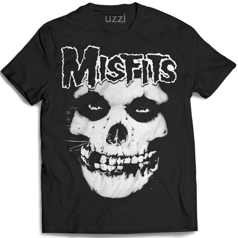 Camiseta de Banda de Rock Punk Misfits Camisa Preta PB