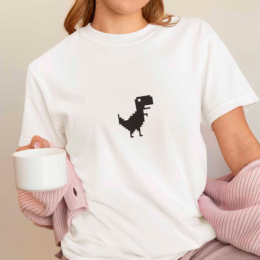 Camiseta Dinossauro Pixel Art | Estampa Gamer Minimalista Retrô Premium Confortavel