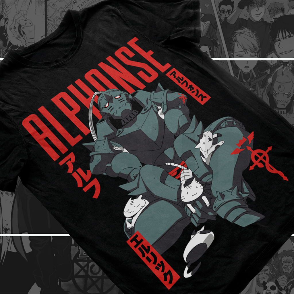 Camiseta Fullmetal Alchemist Alphonse Elric Blusa Camisa de Anime 100% Algodão