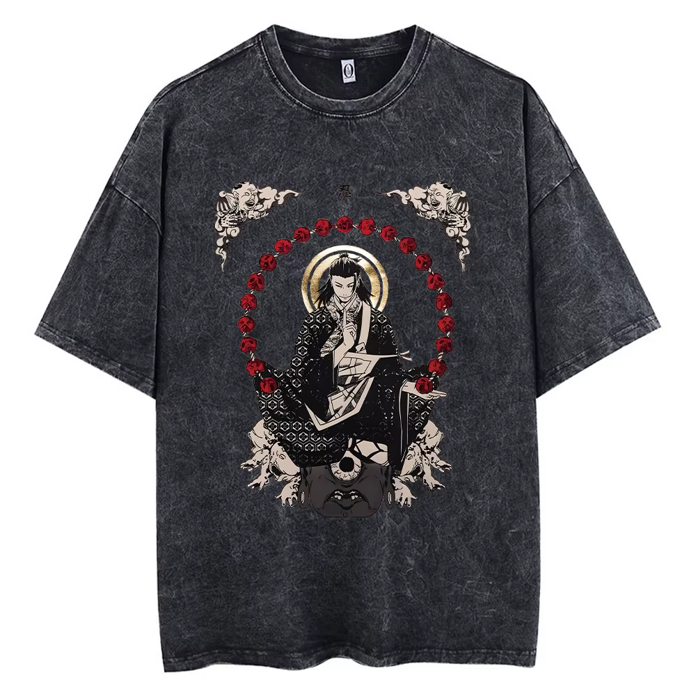 Anime jujutsu t camisa vintage lavado geto suguru camisetas masculinas retro streetwear manga curta mangá ácido de grandes dimensões topos t