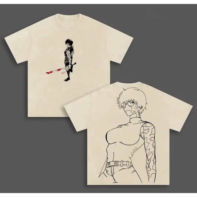 Camiseta Estampada Zenin Maki Anime Jujutsu Kaisen para Homens e Mulheres, T-shirts Retro Lavadas de Manga Curta, Camiseta de Algodão Harajuku