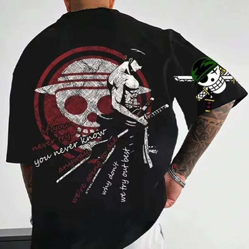 Camiseta Masculina de Verão 2026 Estilo Academia Gola Redonda Manga Curta com Estampa de Anime Japonês ONE PIECE – Moda e Conforto