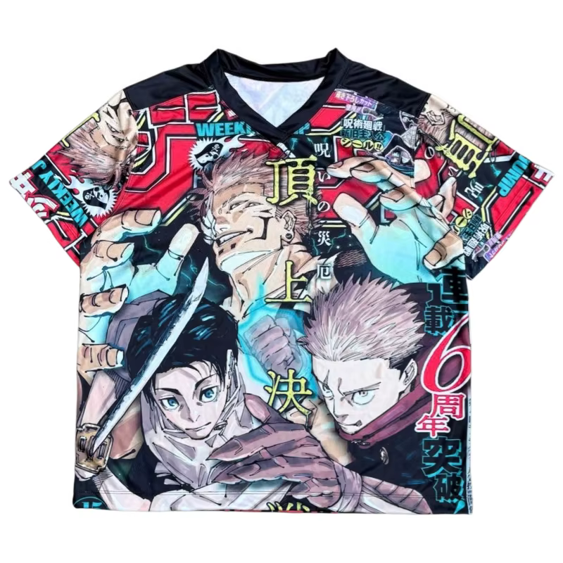 Camiseta Masculina Estilo Manga Jujutsu Kaisen Sukuna Yuji Yuta com Impressão 3D, Gola V, Estilosa e Casual para Fãs de Anime