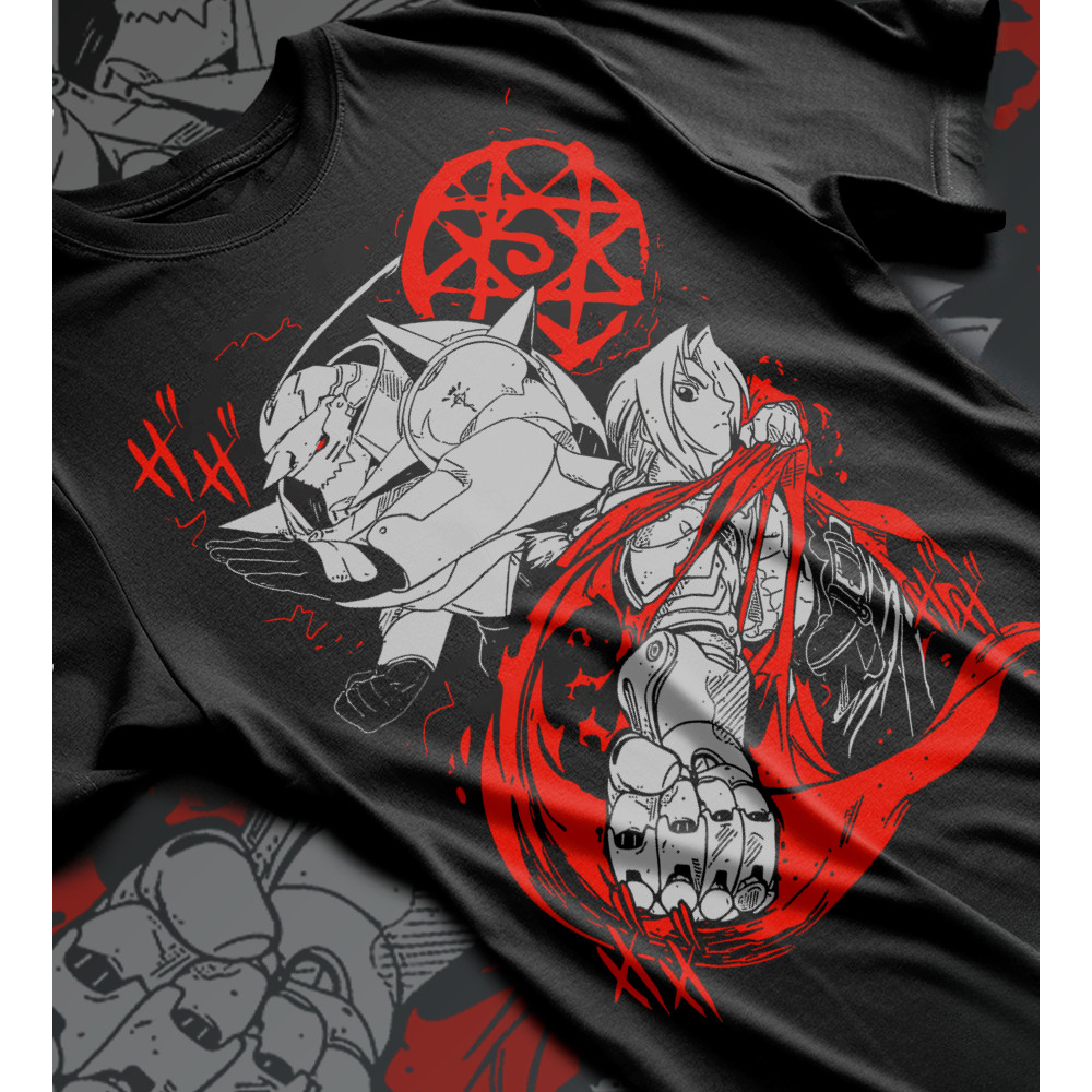 [Camiseta Premium em Algodão Puro]GXG Camiseta Basica Algodao Edward Elric E Alphonse Elric Fullmetal Alchemist Anime Te