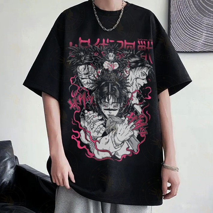 Camiseta preta oversize Jujutsu Kaisen Satoru Gojo Choso Algodão Unissex Street Trendy Black