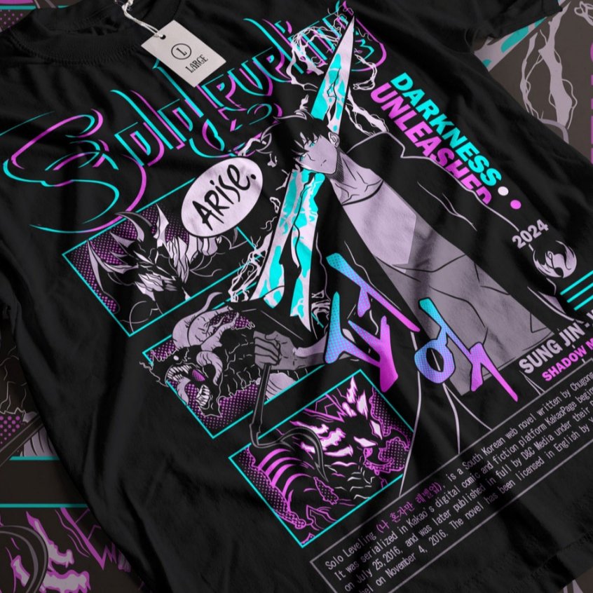Camiseta Unissex Algodão Anime Solo Leveling Sung Jin-Woo